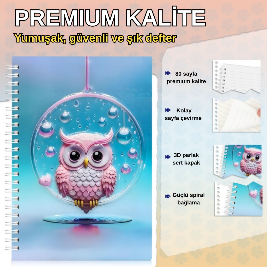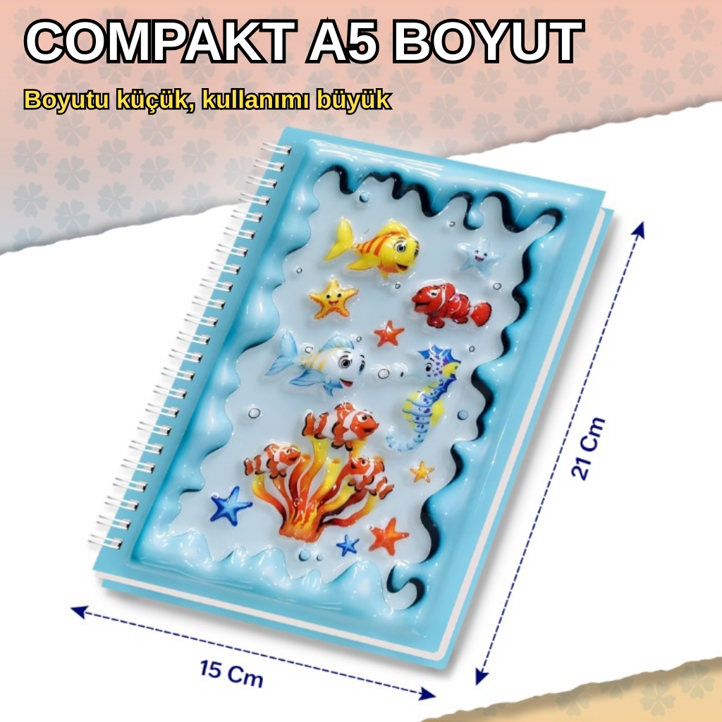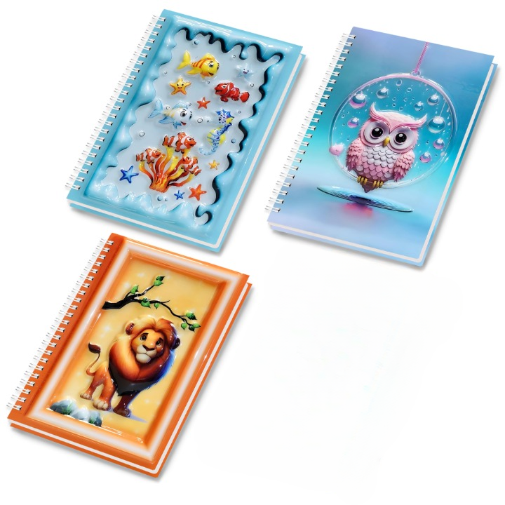 Notlarınıza tatlı bir dokunuşla katın! Parlak ve kabartmalı 3D kapağında deniz canlıları , baykuşlu su dalgası , sevimli aslan Dayanıklı sert kapak ve sağlam spiral ciltleme ile okul, günlük kullanım veya hediye için mükemmel.