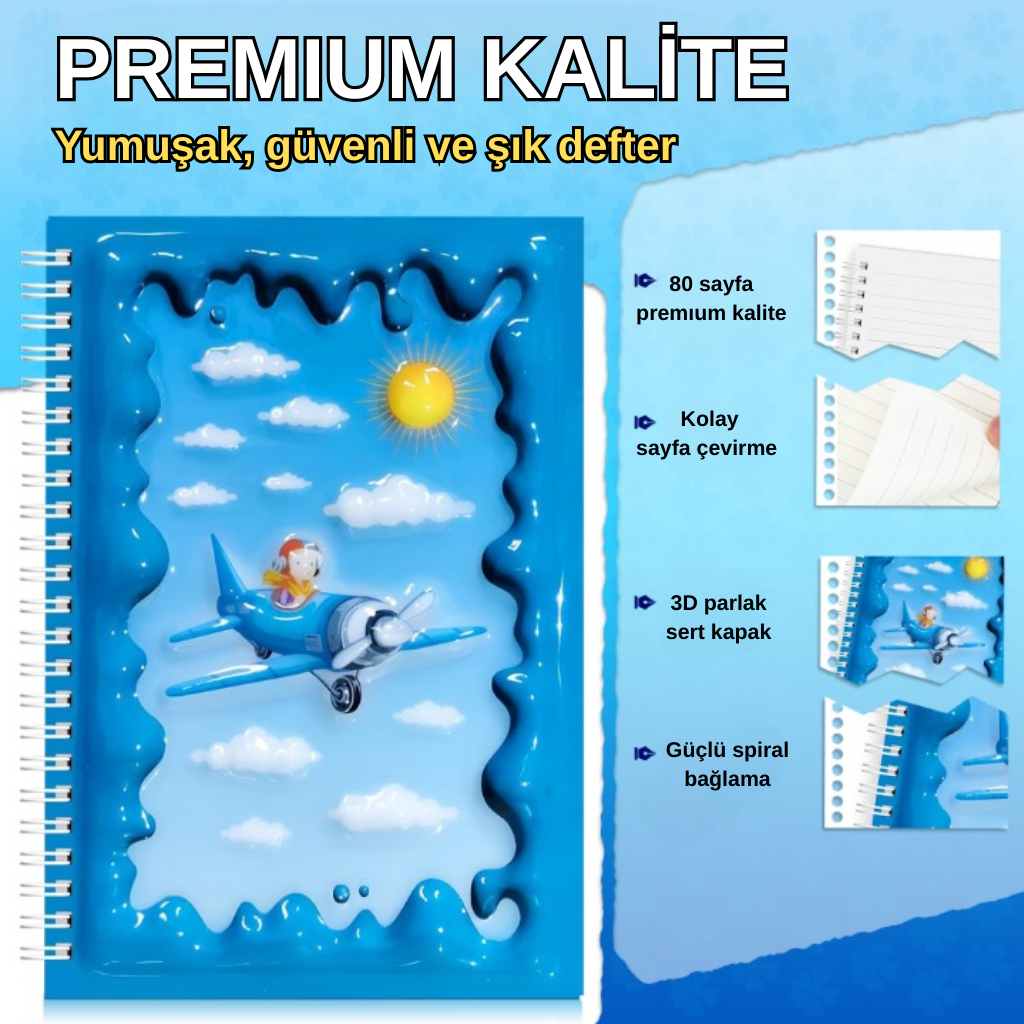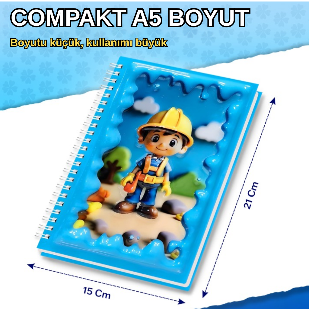 Notlarınıza tatlı bir dokunuşla katın! Parlak ve kabartmalı 3D kapağında küçük doktor , pilot ve uçak , inşaat işçisi Dayanıklı sert kapak ve sağlam spiral ciltleme ile okul, günlük kullanım veya hediye için mükemmel.