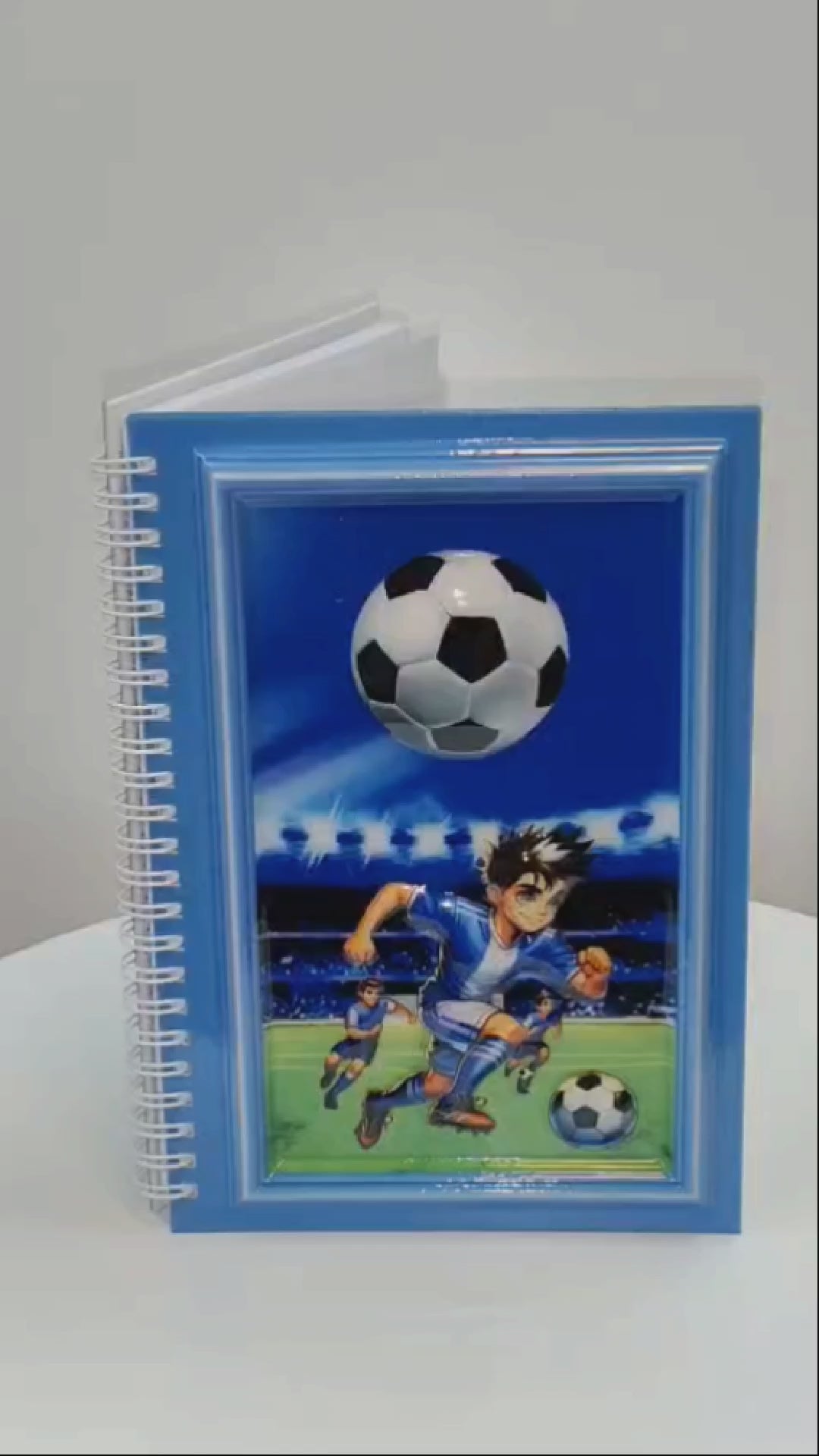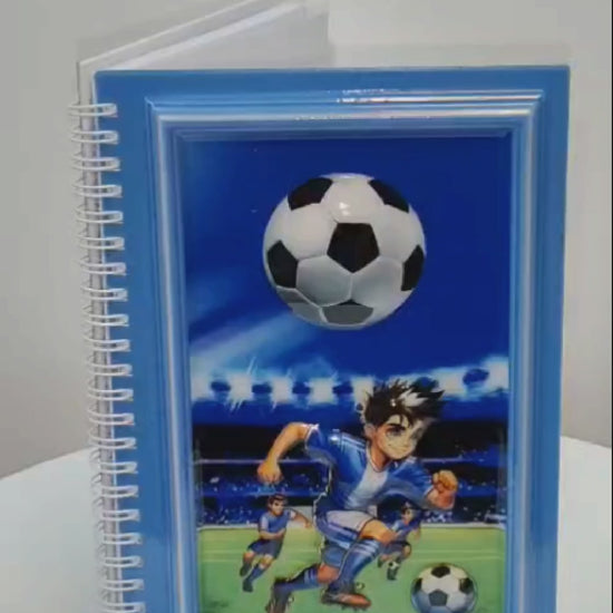 Stadyum ışıkları altında futbol oynayan karakter tasarımı ve kabartmalı futbol topu detayıyla spor tutkunları için özel! Parlak ve kabartmalı 3D kapağı, dayanıklı sert kapak yapısı ve pratik spiral ciltleme ile hem şık hem dayanıklı.