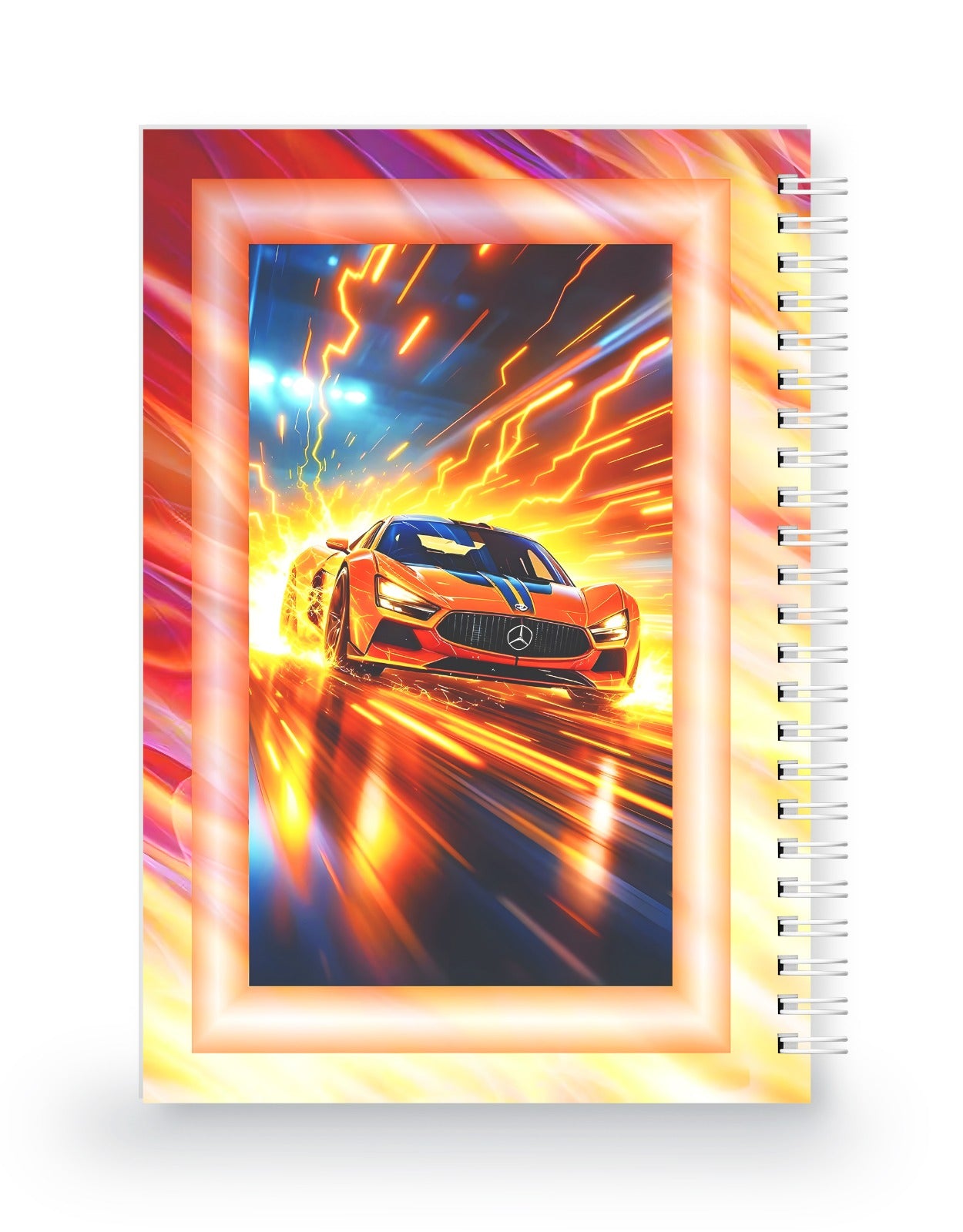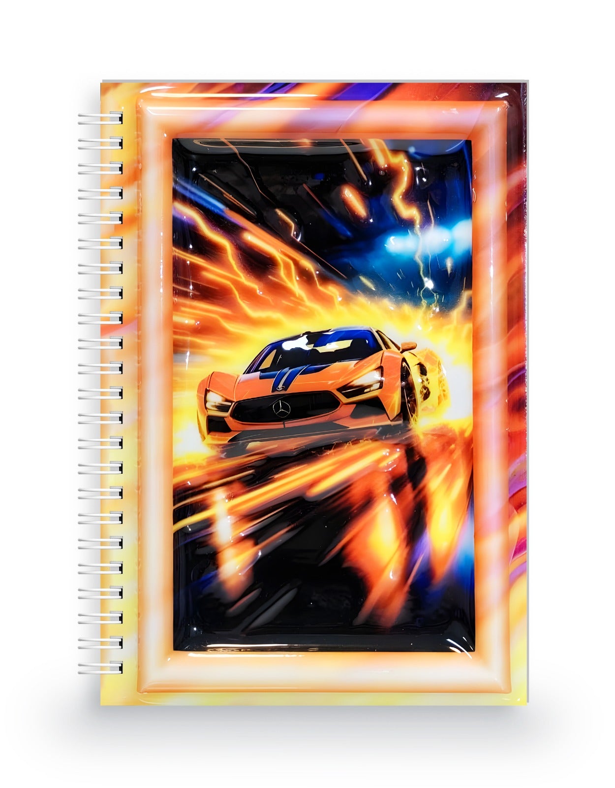 Notlarınıza hız katın! Parlak ve kabartmalı 3D kapağında ateşli bir pistte ilerleyen spor araba ve dinamik ışık efektleri yer alıyor. Dayanıklı sert kapak ve sağlam spiral ciltleme ile okul, günlük kullanım veya hediye için mükemmel.