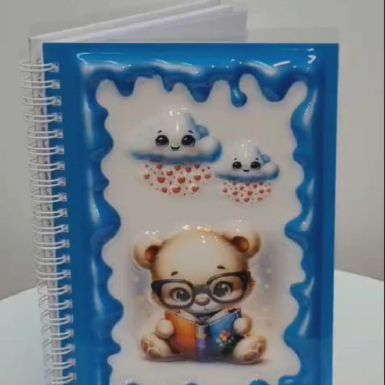 Notlarınıza tatlı bir dokunuş katın! Parlak ve kabartmalı 3D kapağında gözlüklü sevimli bir ayıcık kitap okuyor, üstte ise kalp yağmuru yağdıran şirin bulutlar yer alıyor. Dayanıklı sert kapak ve sağlam spiral ciltleme ile okul, günlük kullanım veya hediye için mükemmel.