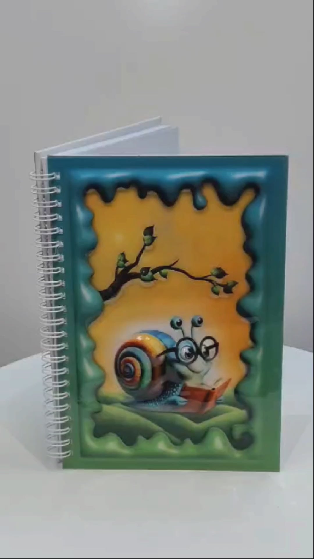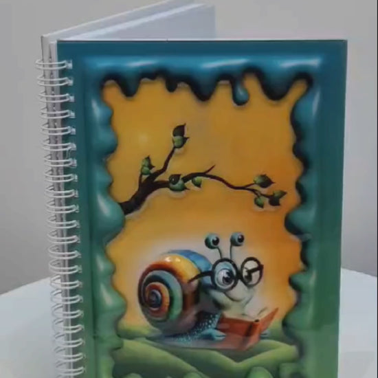 Notlarınıza sevimli bir dokunuş katın! Parlak ve kabartmalı 3D kapağında gözlüklü, rengarenk kabuklu bir salyangoz kitap okuyor. Dayanıklı sert kapak ve sağlam spiral ciltleme ile okul, günlük kullanım veya hediye için mükemmel.