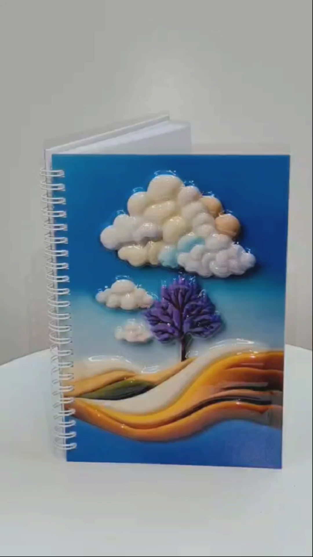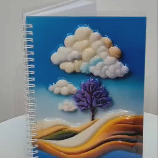 Renkli tepeler, mor ağaç ve yumuşak bulut tasarımıyla huzur veren bu defter, kabartmalı 3 Boyutlu kapağıyla hem sanatsal hem de dayanıklı bir kullanım sunar. Sert kapak ve spiral ciltleme ile her ortamda rahatlıkla kullanılabilir.