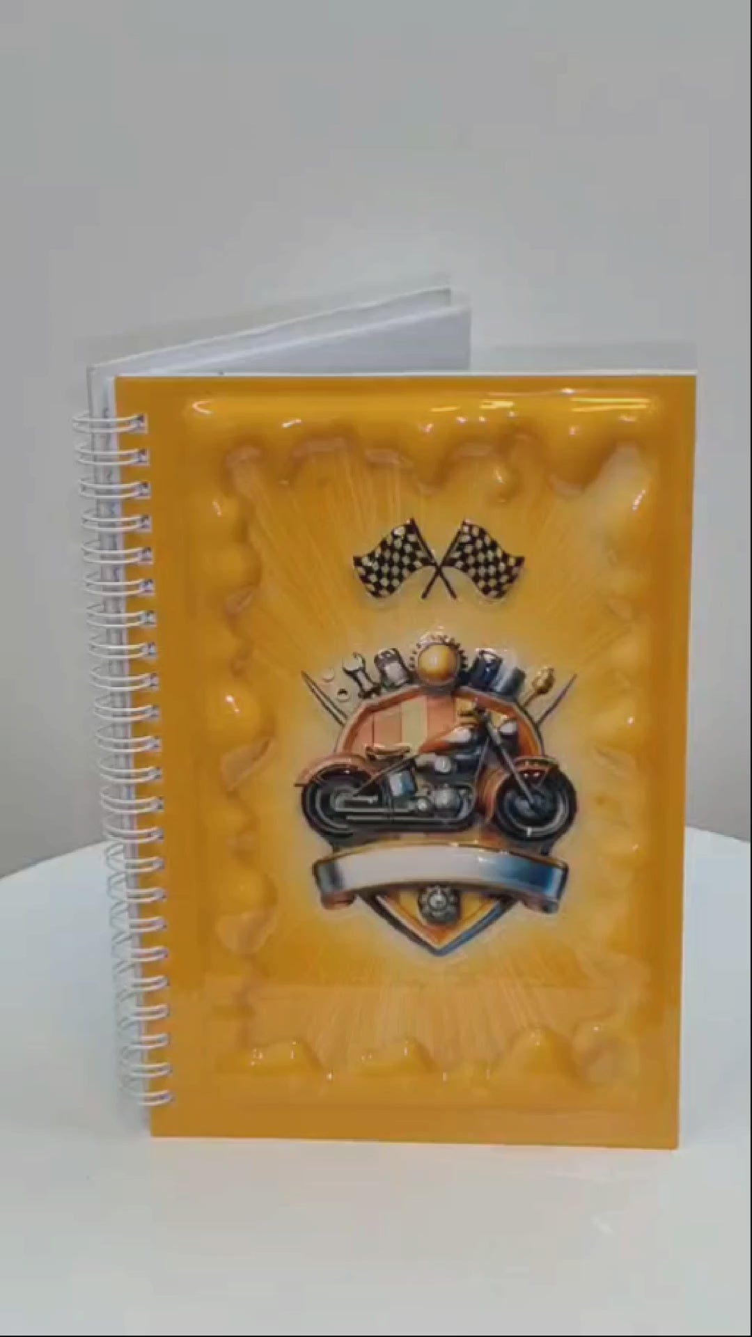 Notlarınıza hız katın! Canlı sarı kapak, kabartmalı ve parlak 3D motosiklet tasarımı ile yarış bayrağı detaylarına sahip. Dayanıklı sert kapak ve sağlam spiral ciltleme ile okulda, günlük hayatta veya motosiklet severlere hediye olarak mükemmel.