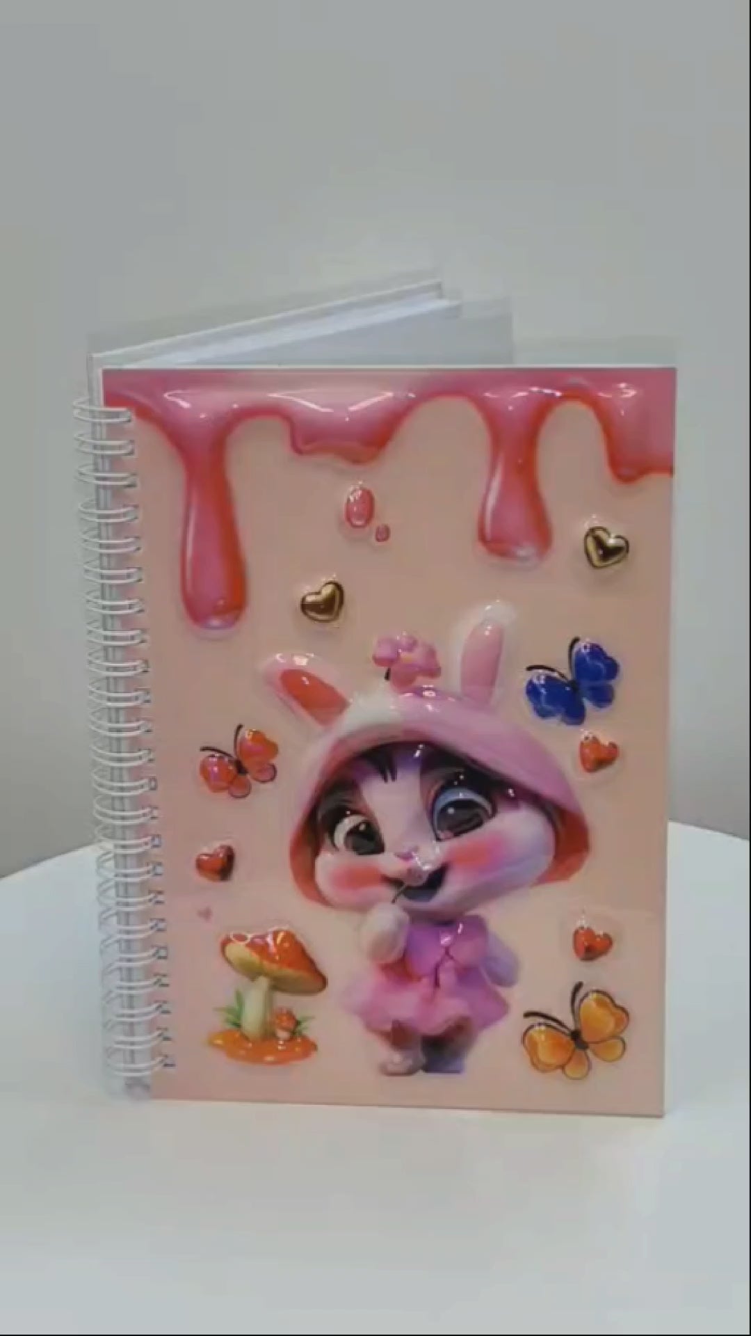 Sevimliliği notlarınıza taşıyın! Parlak ve kabartmalı 3D kapağında pembe elbiseli, kapüşonlu sevimli bir tavşan, kalpler, kelebekler ve mantar detayı bulunuyor. Dayanıklı sert kapak ve sağlam spiral ciltleme ile okulda, günlük kullanımda veya hediye olarak mükemmel.