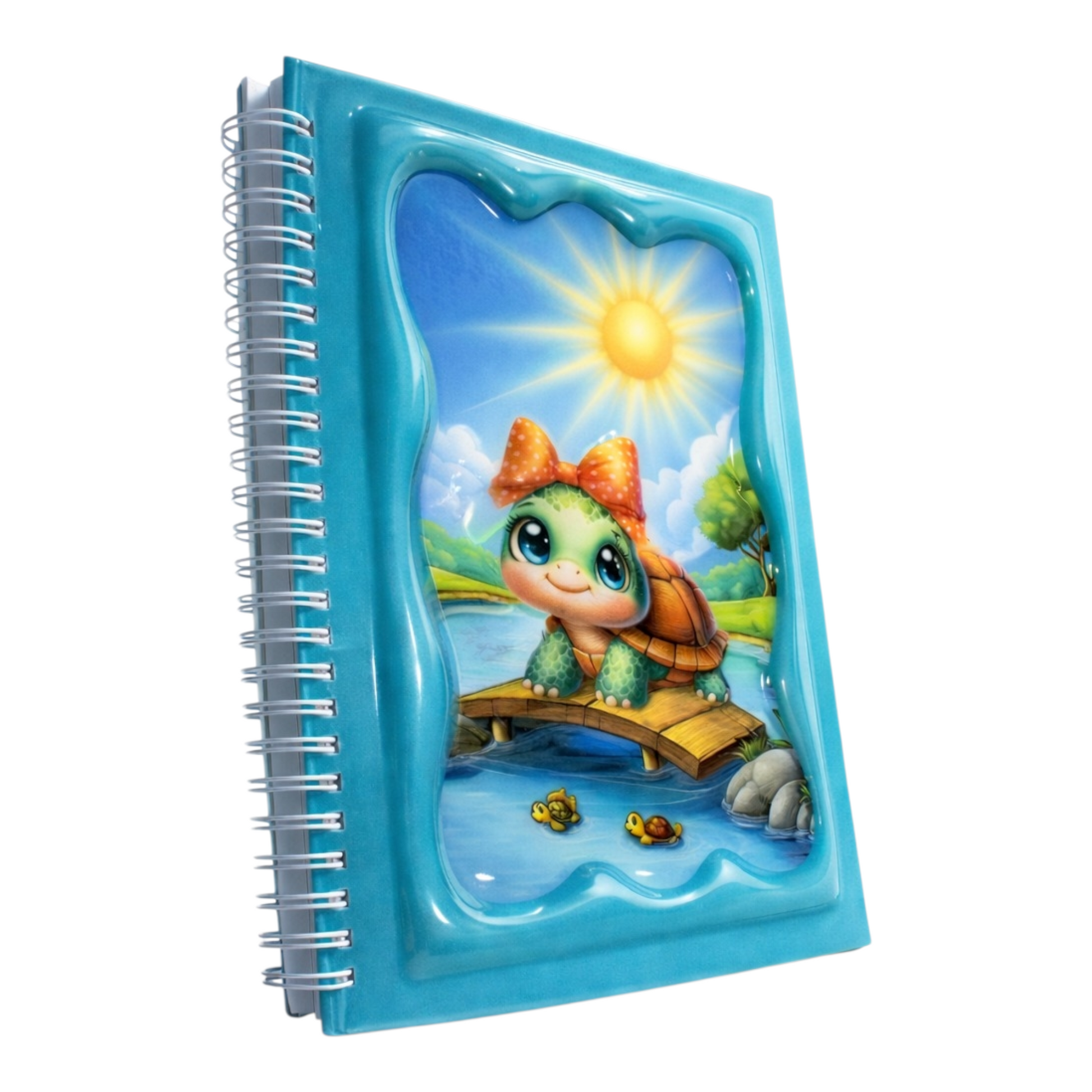 Güneşli bir günde iskelede oturan fiyonk takmış tatlı kaplumbağa tasarımıyla notlarınıza neşe katın! Parlak ve kabartmalı 3D kapağı, dayanıklı sert kapak yapısı ve pratik spiral ciltleme ile hem şık hem uzun ömürlü.