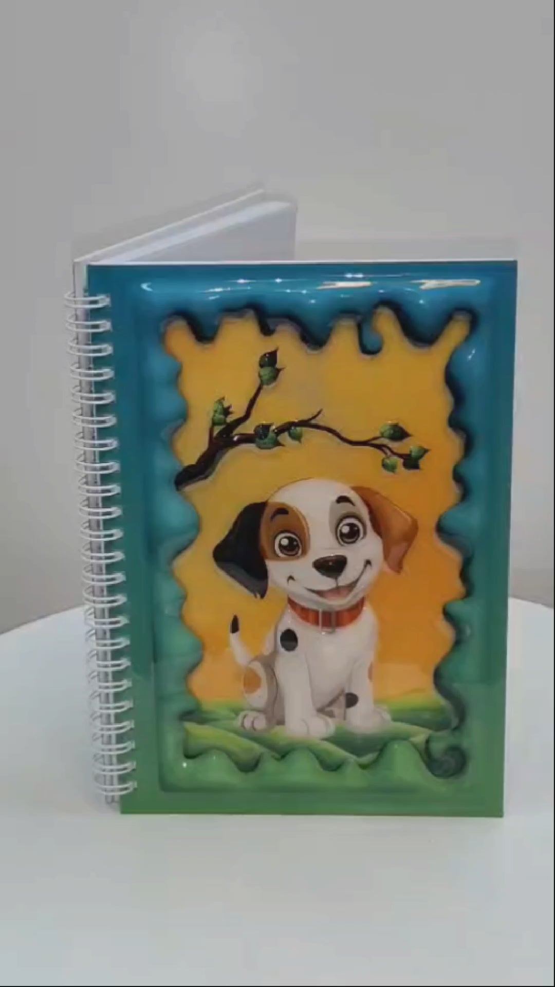 Neşeli notlar için ideal! Parlak ve kabartmalı 3D kapağında kırmızı tasmalı sevimli bir köpek yer alıyor. Dayanıklı sert kapak ve sağlam spiral ciltleme ile okulda, günlük hayatta veya hediye olarak kullanmak için mükemmel.