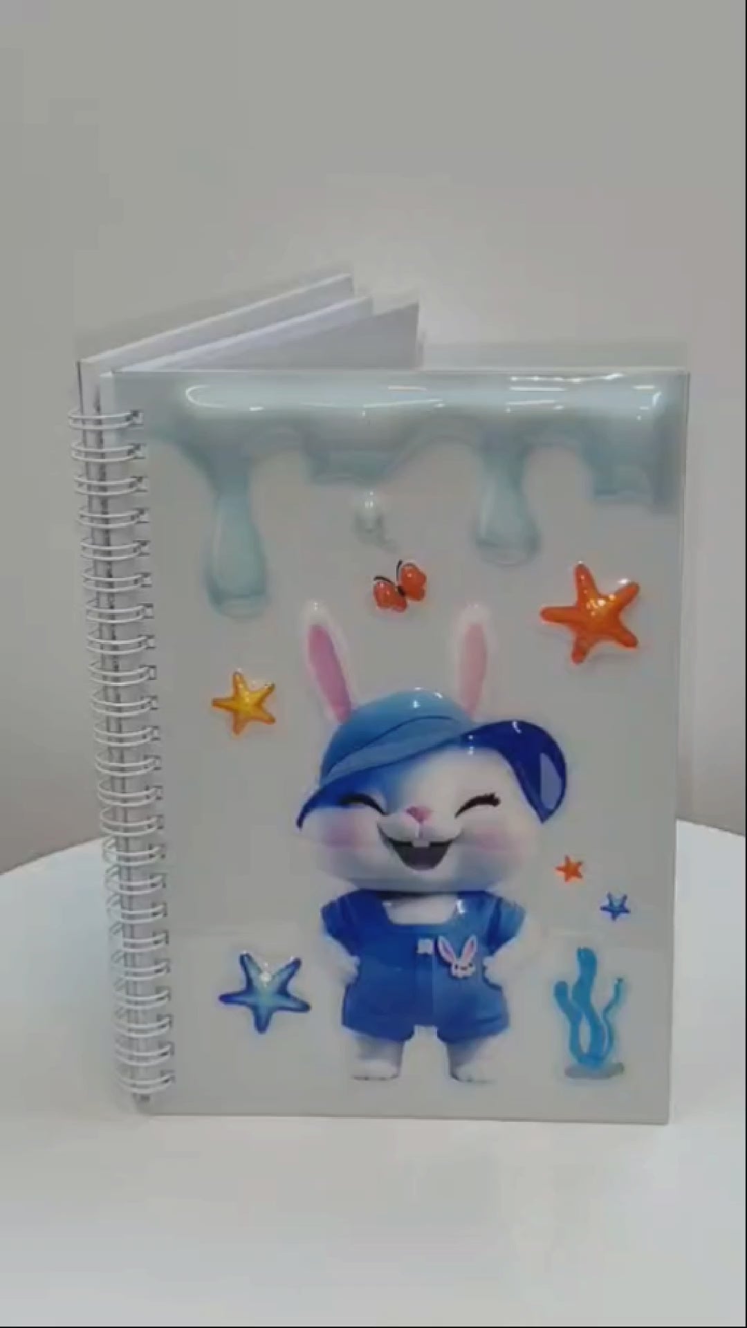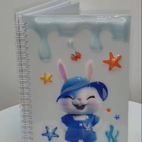 Mavi şapkası ve tulumuyla gülümseyen tatlı tavşan tasarımıyla notlarınıza neşe katın! Parlak ve kabartmalı 3D kapağı, dayanıklı sert kapak yapısı ve pratik spiral ciltleme ile hem şirin hem kullanışlı.